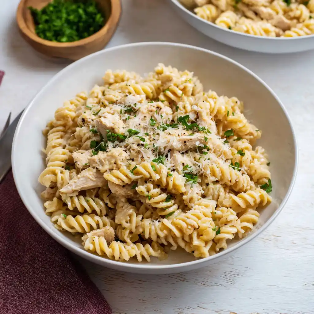 The slow cooker makes it even better. As the chicken cooks slowly in the sauce, it becomes tender and flavorful, absorbing all that garlicky richness. When you stir in the pasta at the end, everything blends together into a perfect balance of creamy, savory, and cheesy goodness.