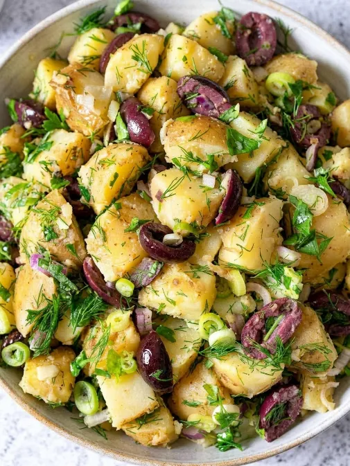The first time I tried a Greek-style version, it felt like a quiet change. The potatoes were still there, soft and comforting, but everything around them felt brighter. Herbs, olives, and a light dressing made it feel like a completely new dish.